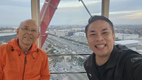 Norimasa brought me to the nearby Kasai-Rinkai Park, and I took the ferris wheel with him. It was the world's tallest ferris wheel in 2001!